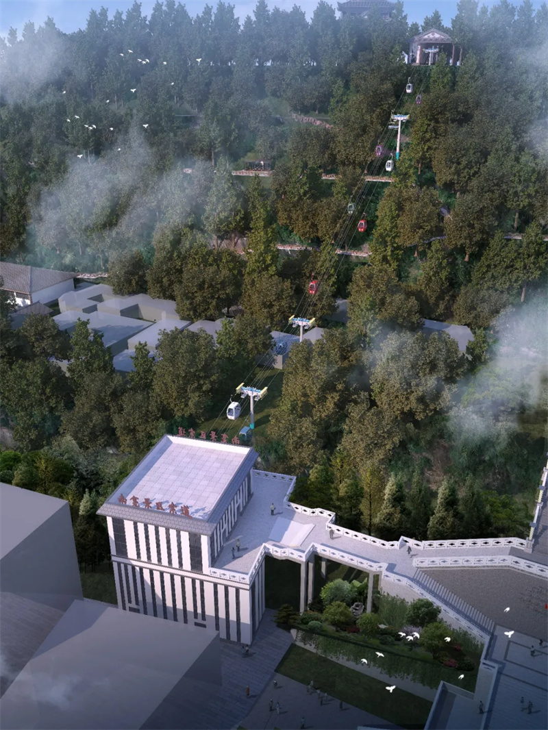 方案在原下站房前面新建下站房,人行流线与南龛中轴线的人行连接,原下站房不进行任何改变。
