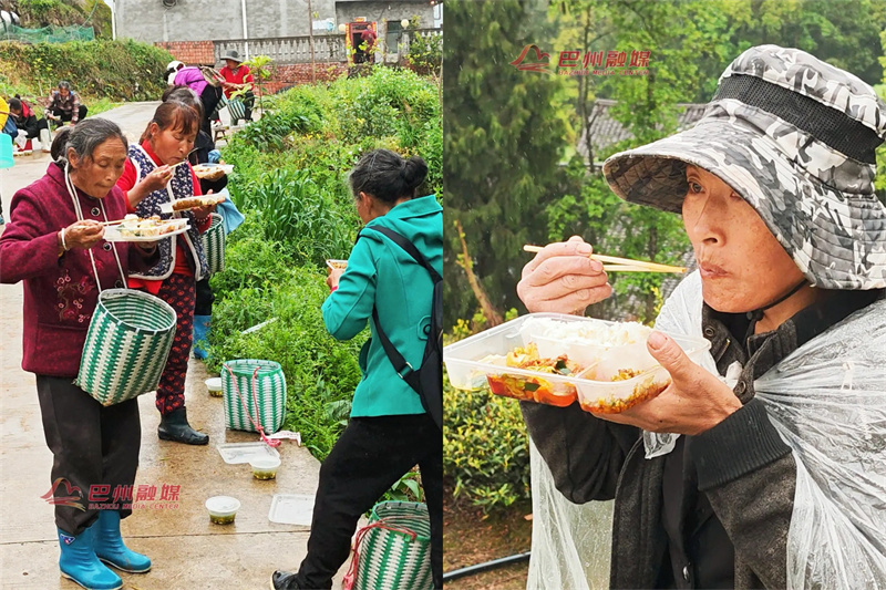 “真没想到,下着雨,政府还把饭送到地头来!”