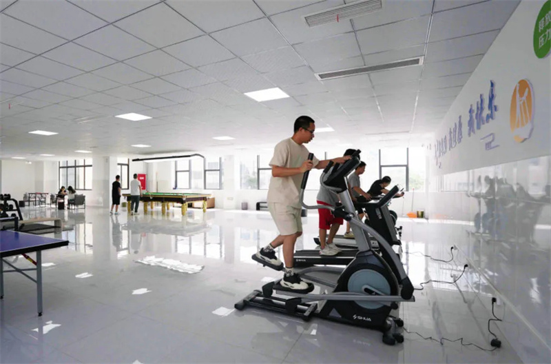 员工在清江工业园“企业幸福中心”健身。(张韵晗摄)