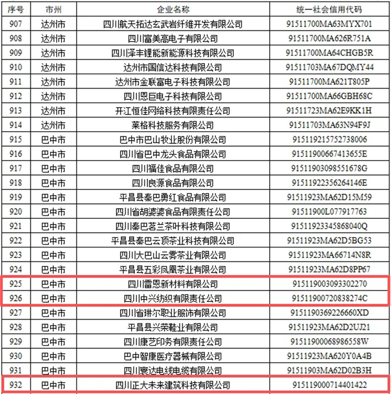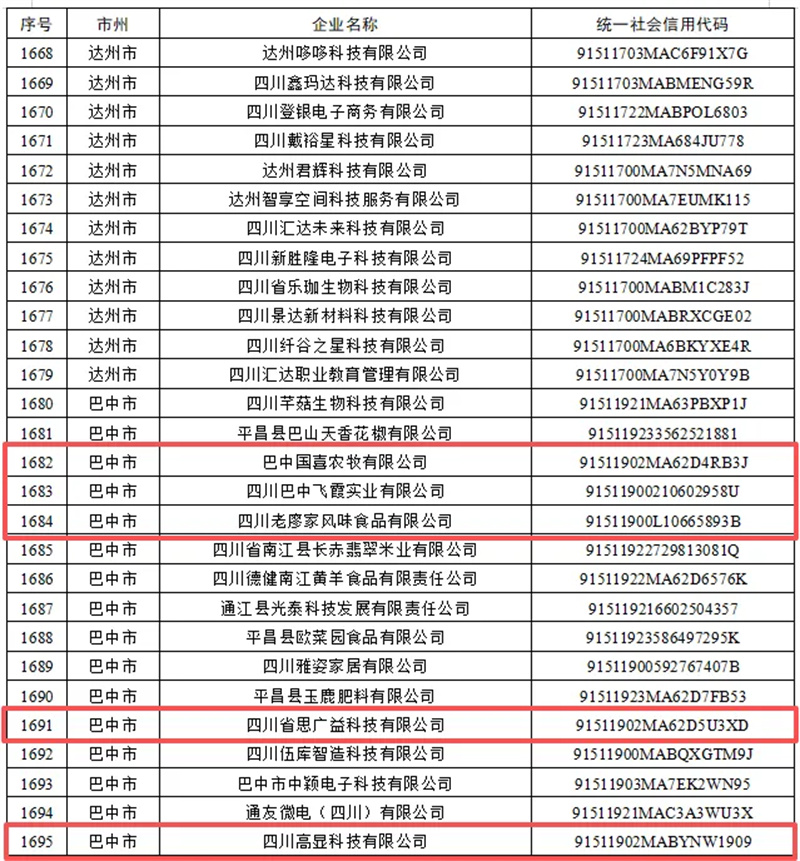2025年度四川省专精特新中小企业新认定名单(部分)
