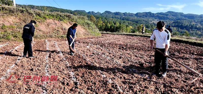 “大家注意把握播种密度,施肥要均匀覆盖土壤,播种后轻轻压实保墒……”11月13日,天马山镇狮子寨村的高标准农田里,一场别开生面的“田间党课”正在进行。全镇党员干部们手持锄头、拎着肥料、麦种,在农技专家的指导下,翻耕、撒种、施肥、覆土……不远处,几台大型旋耕机正轰鸣着穿梭田间,翻起层层新土,大家趁着晴好天气忙着播种,田间地头一派热火朝天的繁忙景象。