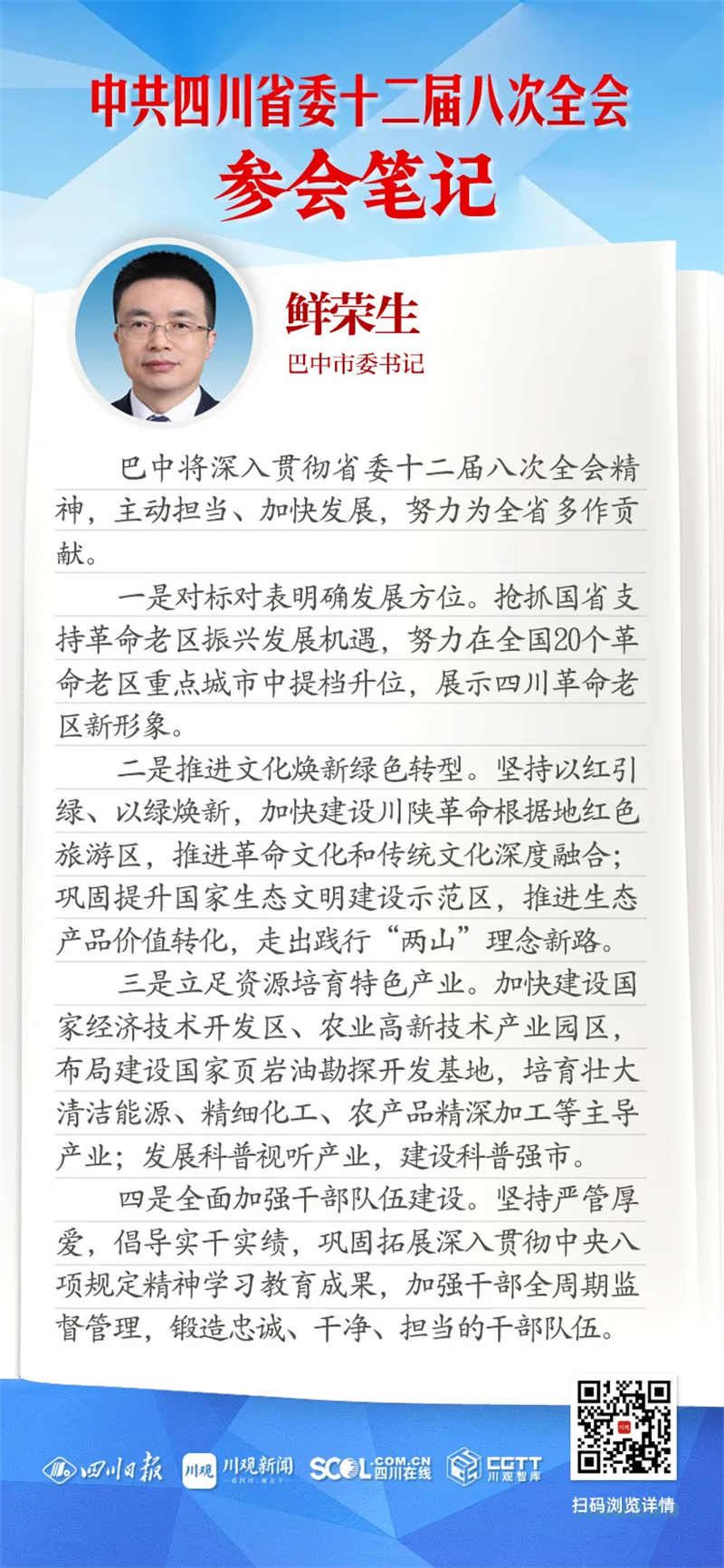巴中将深入贯彻省委十二届八次全会精神,主动担当、加快发展,努力为全省多作贡献。