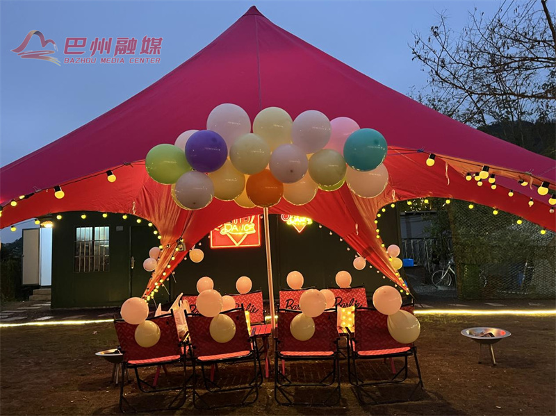 “骨子里喜欢折腾,更热爱生活。”别川楠在考察成都、绵阳、浙江等多地后,发现小城市户外露营市场潜力巨大。2025年5月,他投资50万元,在天星桥打造了占地1500平米的星湖露营地,融合户外露营与露天餐酒吧,开创了巴州文旅新业态。