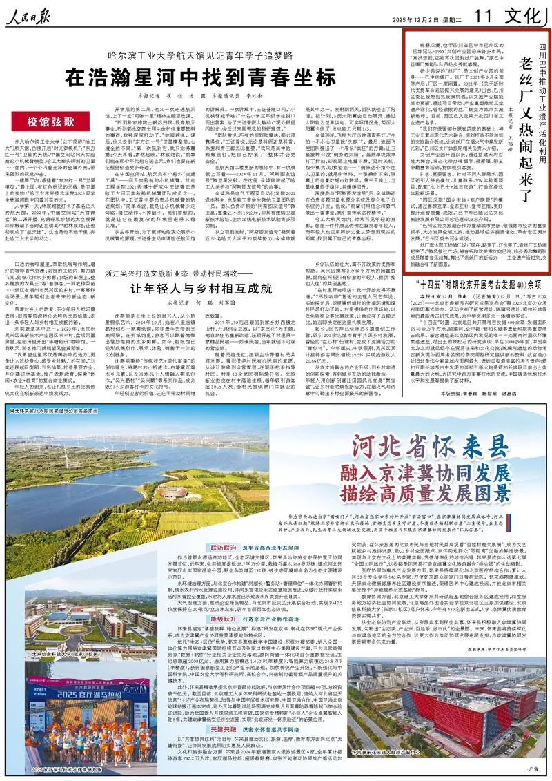 《人民日报》文化版以《四川巴中推动工业遗产活化利用——老丝厂又热闹起来了》为题