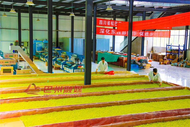 茶产业,是天马山镇最具辨识度的主导产业之一。“十四五”期间,天马山镇以东西部协作为契机,引进5家优质茶企,栽种黄金芽、安吉白茶、龙井等优质品种,规模发展优质富硒茶标准化种植基地6000余亩,注册“巴山叶遇”“松巴茶叶”等特色茶叶品牌,同时组建茶旅产业党建联盟和集体经济平台公司,新建茶叶加工厂2100平方米并获取SC认证,建成7条茶叶加工生产线。茶叶年产量达20吨,年产值近3000万元,同步带动周边1500余人次就近务工,实现年均增收3000元以上——这片“金叶子”,真正成为了富民强镇的坚实支柱。