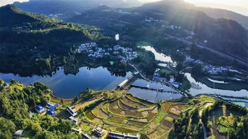 不仅如此,巴中市鼎山情商贸有限公司还盘活了村里的不少闲置资源:把牛家湾堰塘、许家嘴食用菌基地改造成养殖区,建起200多亩梯田式鱼塘;流转786亩闲置土地、40个食用菌棚对外发包,累计流转土地超110亩。“我们走‘村支部+村办企业+农户’的发展模式,带着有养鱼意向的农户们一起干,一起致富。”刘鑫说,公司和养殖户签订生态养殖协议,统一标准、保底收购,保证了鱼的品质。现在全村有18名农民工返乡养鱼,培育出10户示范户、5家专合社,还建了7个生猪、肉牛、土鸡养殖场,总投资超2000万元。