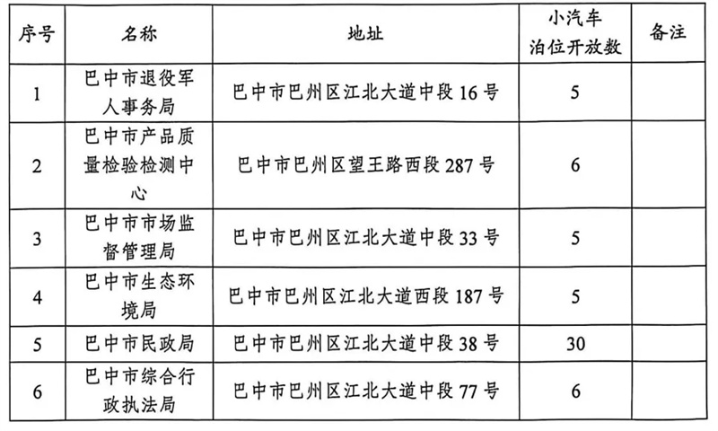 为保障2026年春节期间群众出行便利,营造欢乐祥和的节日氛围,根据《巴中市2026年度“感恩有您·欢迎回家”总体方案》部署,自2026年2月12日(农历腊月二十五)起至2026年2月23日(农历正月初七)止,巴州城区具备条件的路内停车泊位及机关企事业单位停车场将免费开放,共提供5513个车位,各乡镇计划开放免费停车位3341个。同时,城区公厕及党政机关、企事业单位等社会厕所将同步免费开放,共同构建便利的如厕环境。具体信息公布如下。