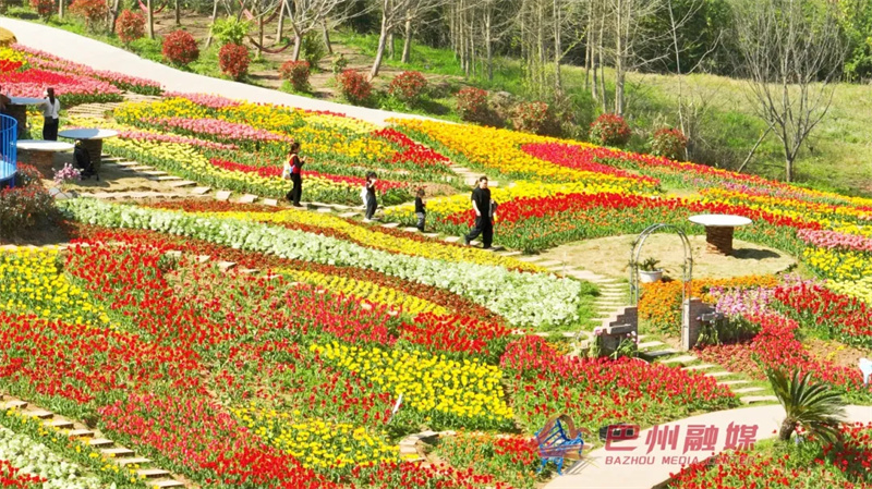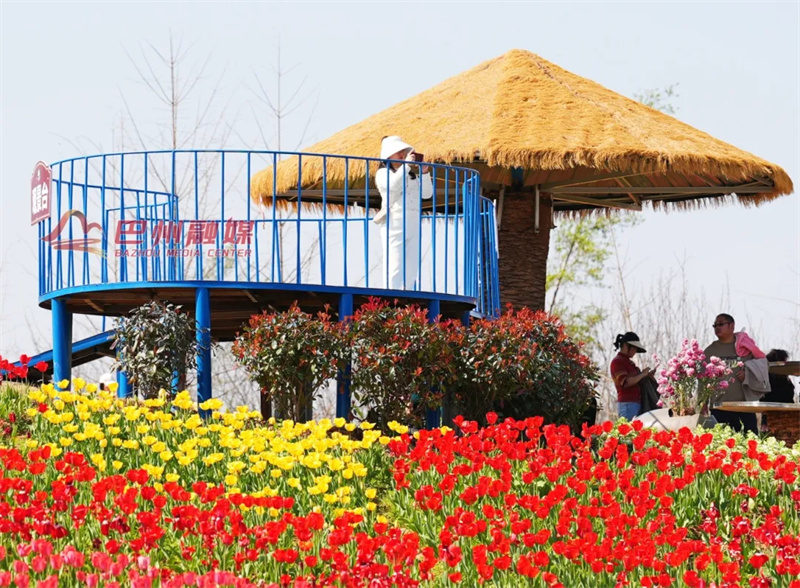正在巴山花海里
