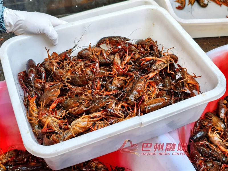 一只只小龙虾青壳鲜亮、腹白干净