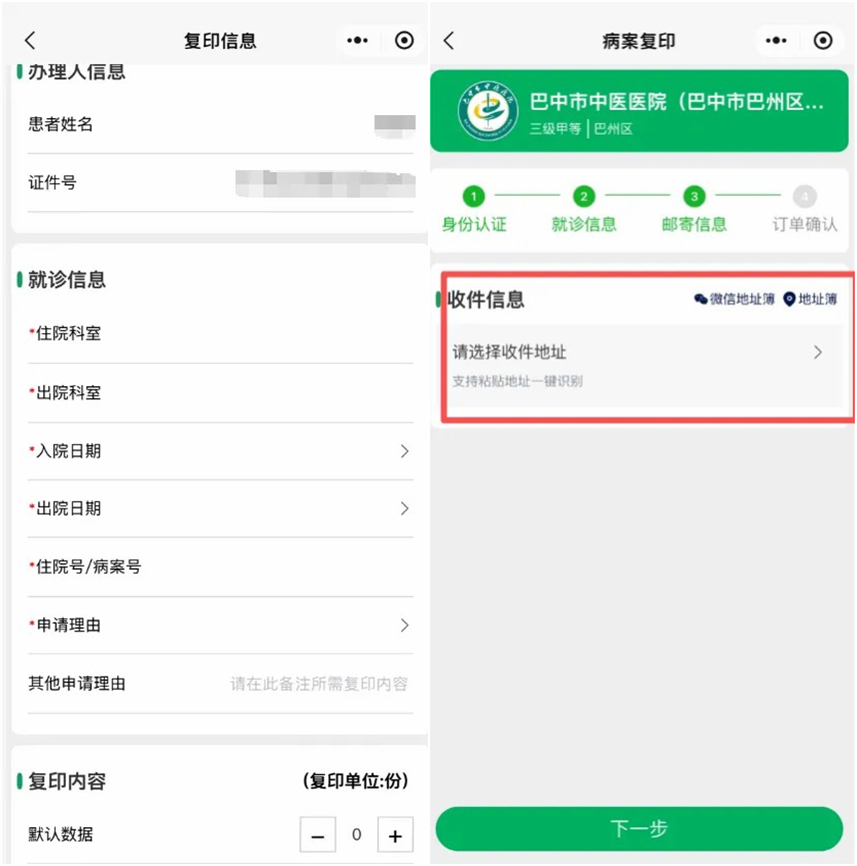 针对这一痛点,近日,成都中医药大学附属医院巴中医院(巴中市中医医院)病案统计科正式开通了“医邮达”线上预约及邮寄服务。具体操作流程如下:
