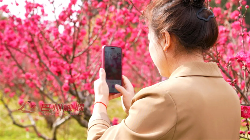 赏花的人举起手机