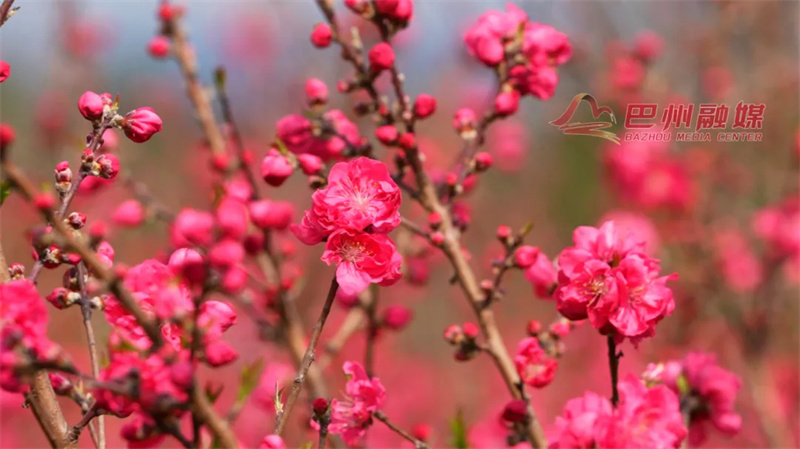 枝头闹着成千上万朵小桃花